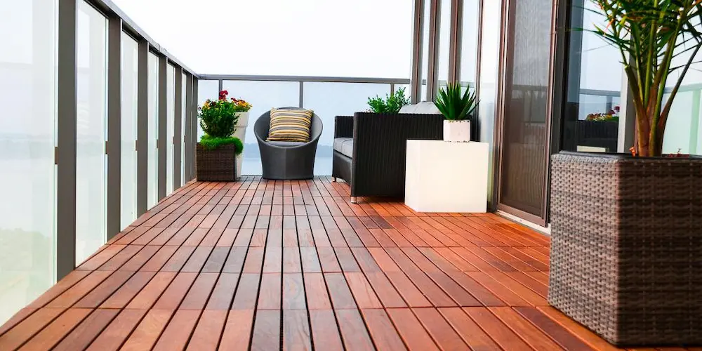 Tablas de terraza compuestas: están hechas de una combinación de madera y materiales poliméricos (por ejemplo, polietileno o polipropileno). Esta mezcla los hace resistentes a la intemperie y a las plagas.